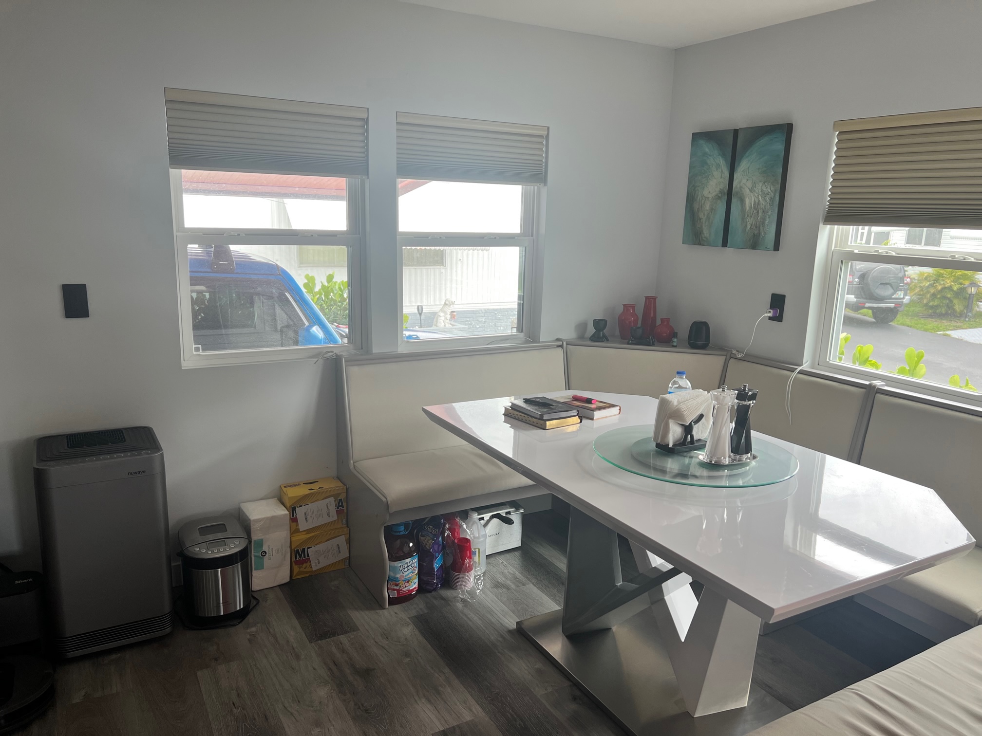 2/2 Double wide, Furnished. Pictures can not say enough. This home has been completely remodeled from top to bottom. Large open floor plan. Scratch proof vinyl floors throughout. The kitchen is amazing, Complete with all new countertops, cabinets, gun metal sink with touch activated faucet, all new top of the line appliances. An amazing island with build in wine cooler and plenty of storage and seating space. Cozy breakfast nook with bench seating. All doors in the home are custom made. Huge walk in, door free, Master bath shower. Mirror has light and auto defrost. The lights inside and outside are controlled by an app. Home is completely wired with Ring system on all doors and windows. Windows open in for easy cleaning. New large water heater. Electric fireplace with heater. Huge shed with new washer and dryer. Screened in porch. Beautifully landscaped. New propane gas line put in to run the generator wired to the house. Roof has been recently sealed. Home is completely wired with Ring system on all doors and windows. Windows open in for easy cleaning. New large water heater. Electric Fireplace with heater.