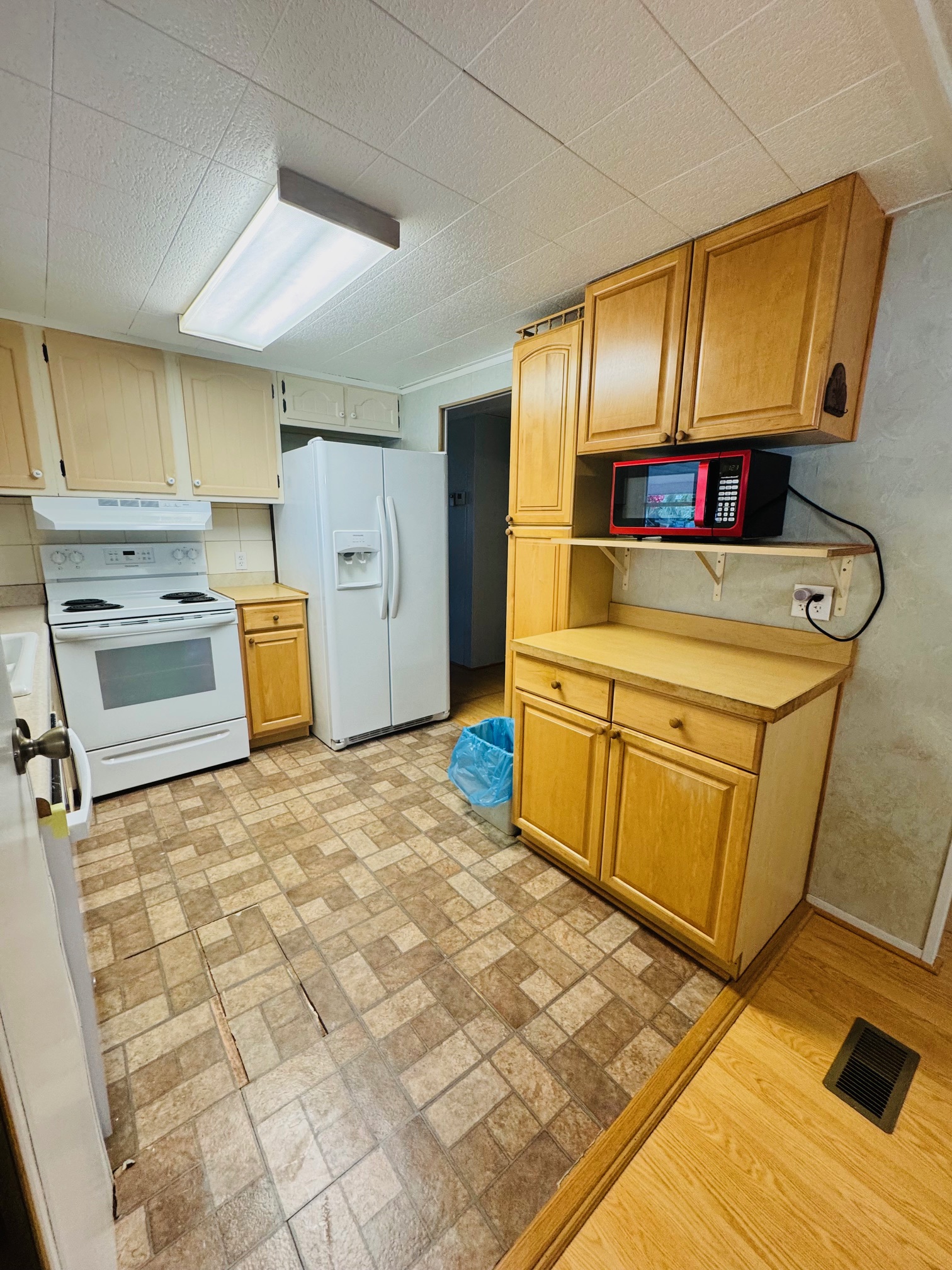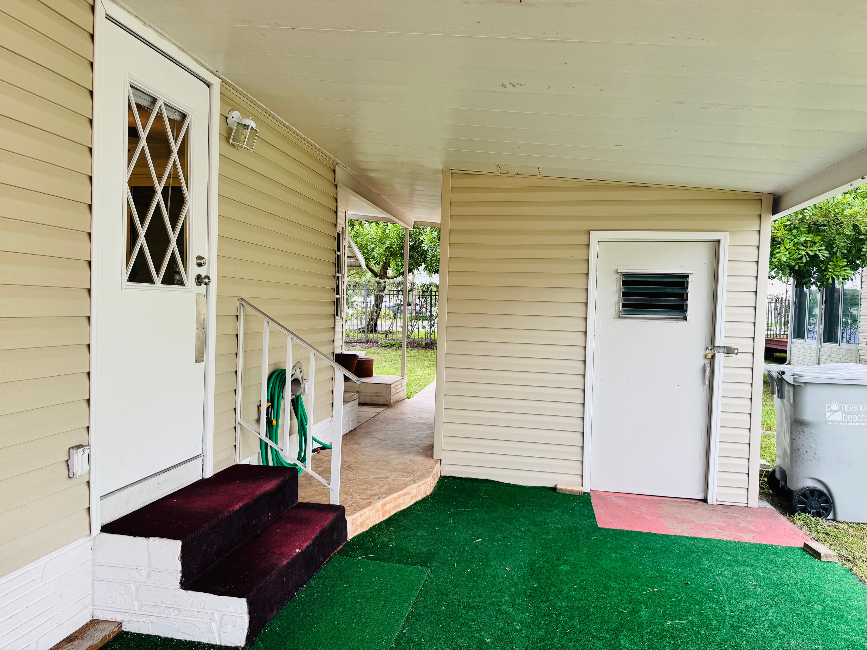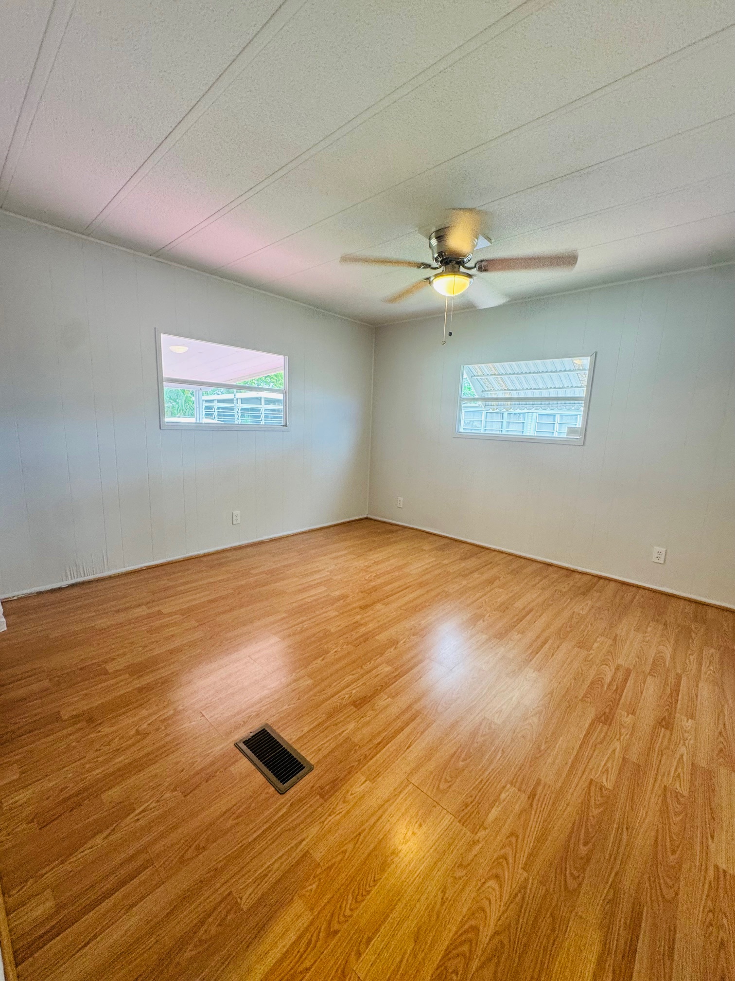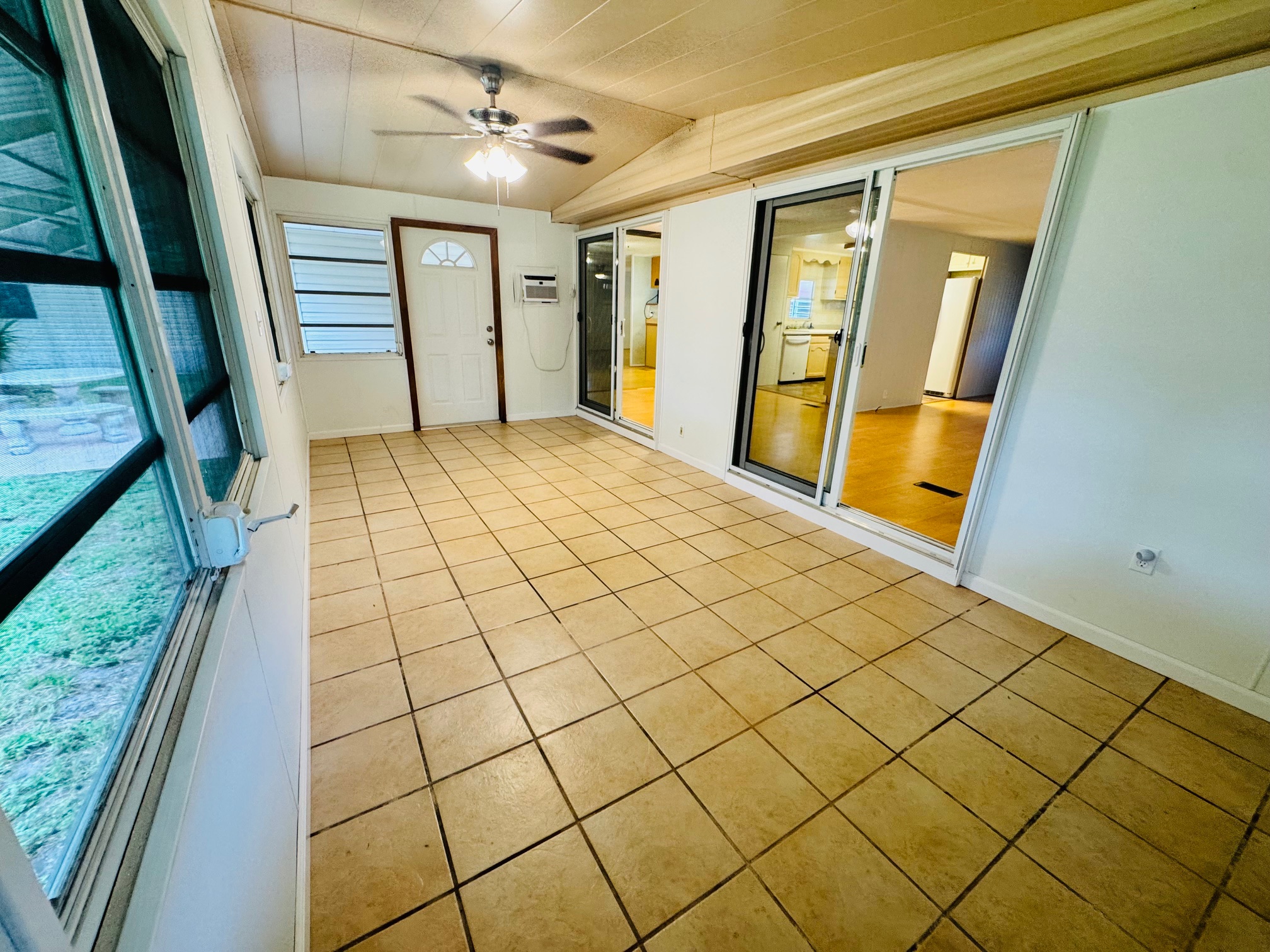 2/2 Double wide, Freshly painted throughout walls and ceilings, this spacious open floor plan offers a modern feel from the moment you walk in. Enjoy updated bathrooms, a brand-new dishwasher, and an upgraded sliding glass door that opens to a spacious Florida room, lovely backyard porch — perfect for entertaining. Durable laminate flooring runs throughout the home, with stylish tile in the bathrooms for easy maintenance. Move-In Ready!
