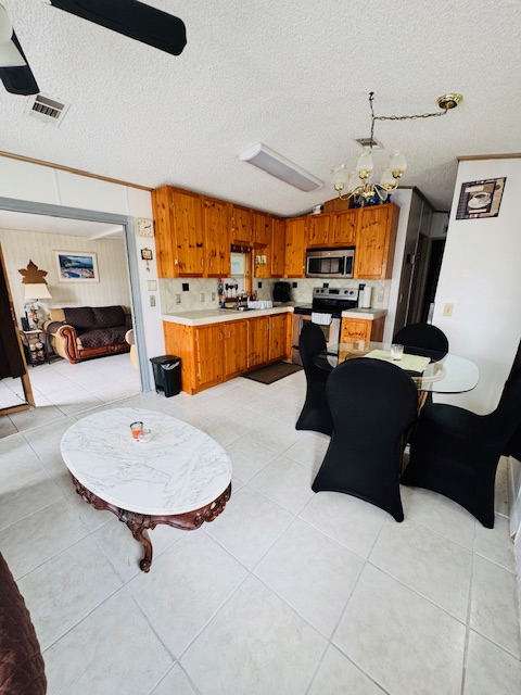 Spacious one-bedroom, one-bath retreat with tile flooring throughout. AC 2024. Freshly painted. The open kitchen flows into two roomy living areas—plenty of space to relax or entertain. Fully furnished inside and out, including all major appliances and small kitchen appliances. New blinds have been installed in the front window, adding a fresh touch to the living space. The roof is well-maintained with annual servicing, ensuring long-lasting protection and peace of mind. Enjoy your morning coffee on the welcoming front porch while greeting neighbors in this quiet, friendly community or step out back and enjoy the spacious deck—perfect for BBQing with friends or family and making lasting memories outdoors. Comfortable, inviting, and full of charm—your ideal escape. |